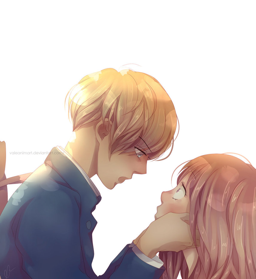 Description: A couple of people that are standing next to each other with their faces close together and looking at each other.