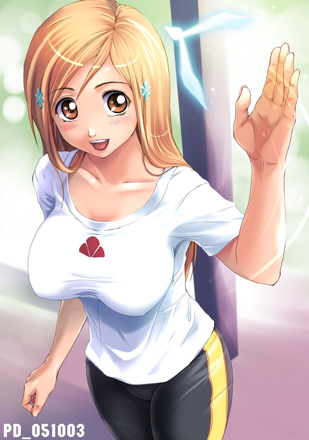 Description: A cartoon girl with blonde hair and a white shirt is holding her hand up in the air and looking at the camera.