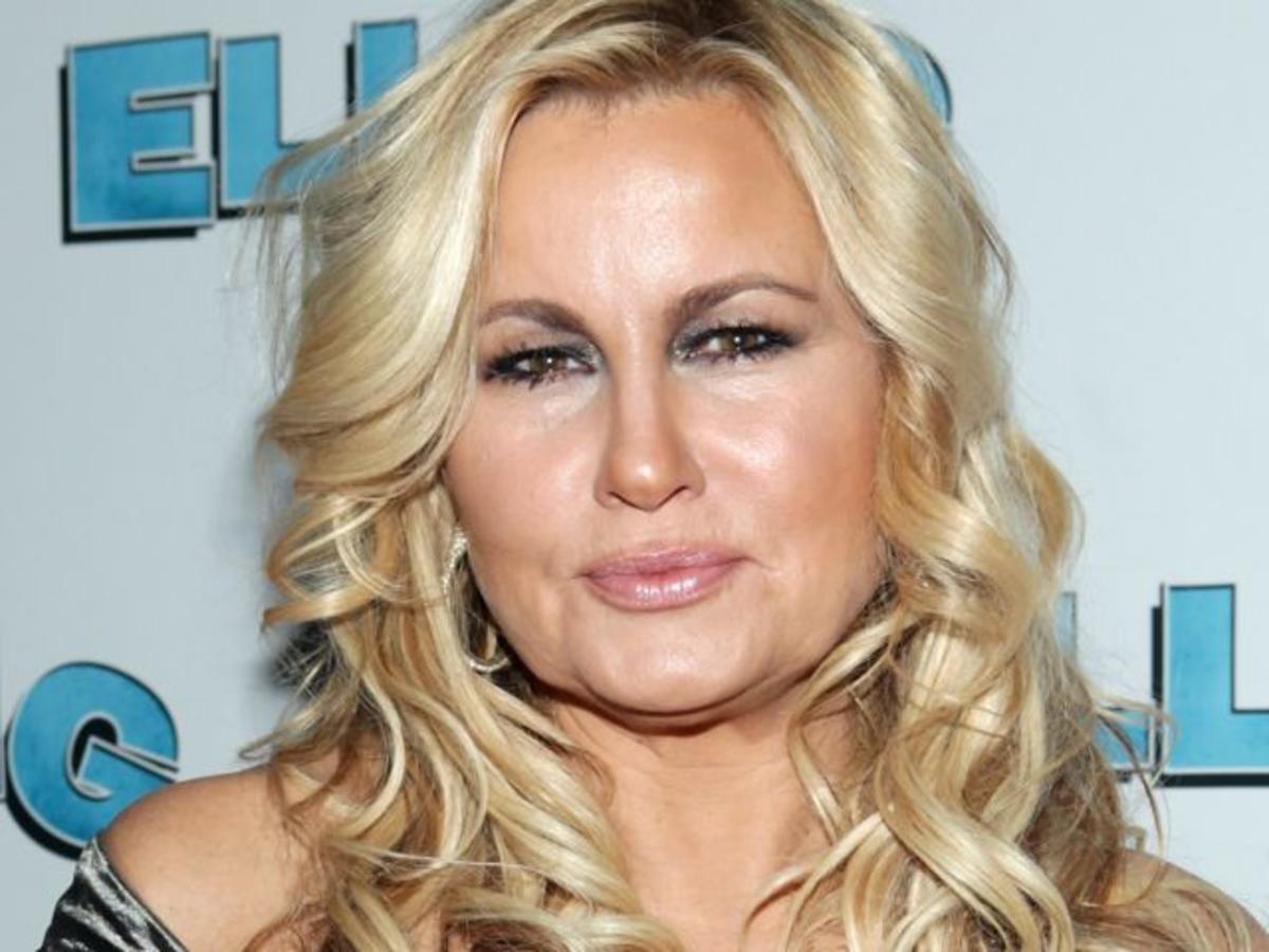 Description: A woman with blonde hair and a black dress posing for a picture in front of a blue wall with a blue logo.