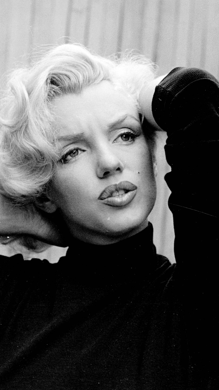 Description: A woman with blonde hair and a black shirt posing for a picture with her hand on her head and her hand on her head.