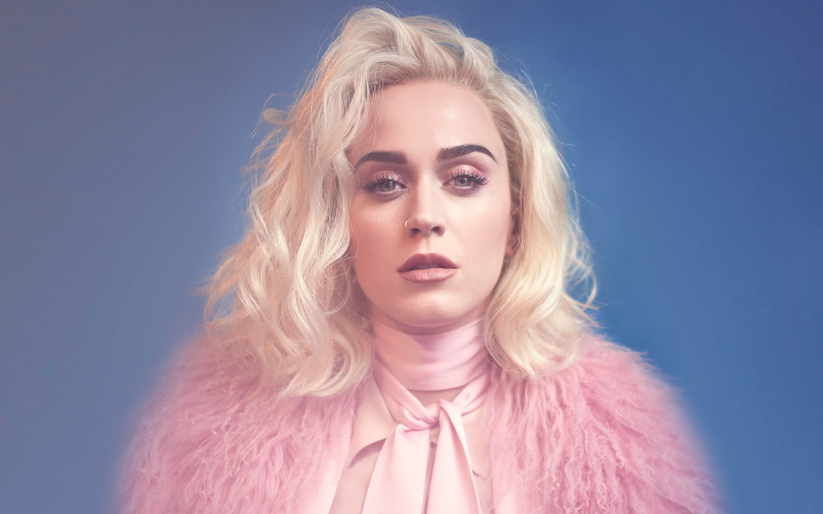 Description: A woman with blonde hair and a pink coat on a blue background with a pink bow tie and a pink coat.
