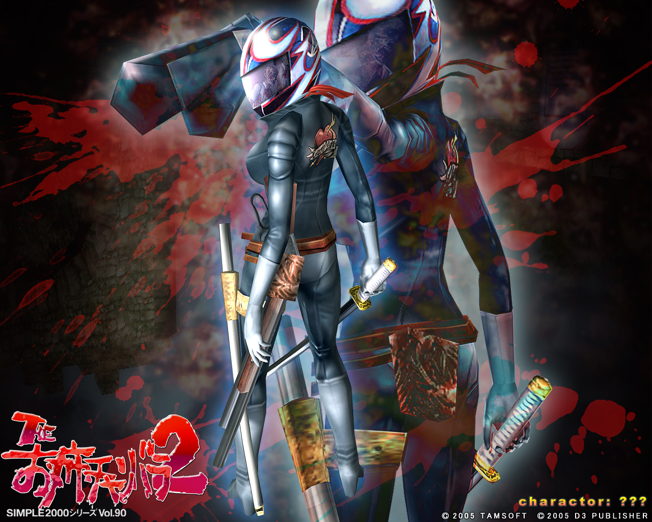 Description: A couple of people standing next to each other in front of a painting of blood and splatters.