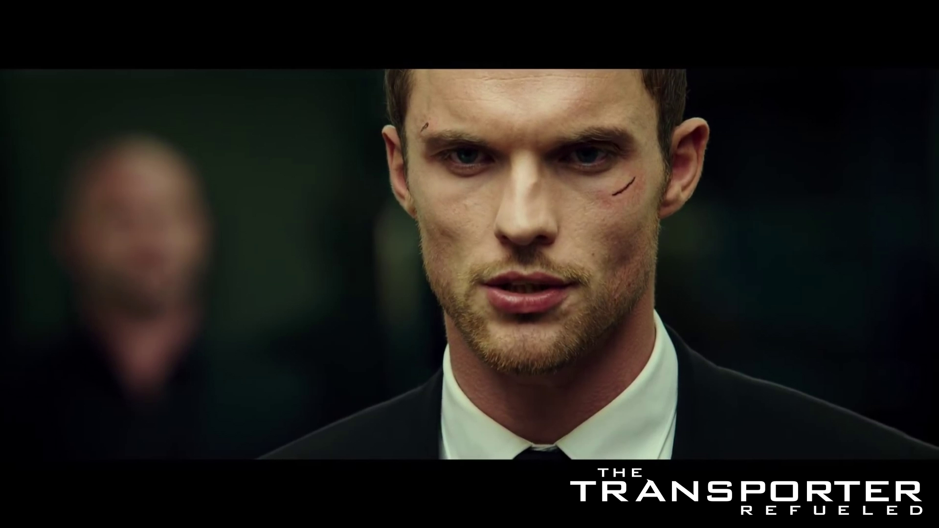 Description: A man with a bloody face and a suit on in a dark room with a man in the background.