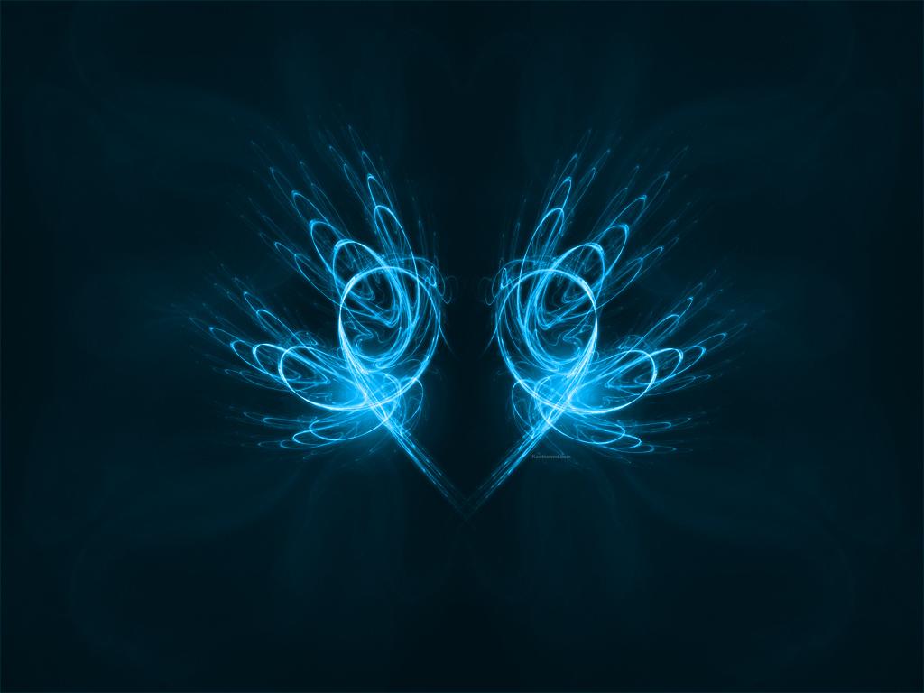 Description: A blue abstract background with a pair of wings in the middle of the image with a black background and a blue background.