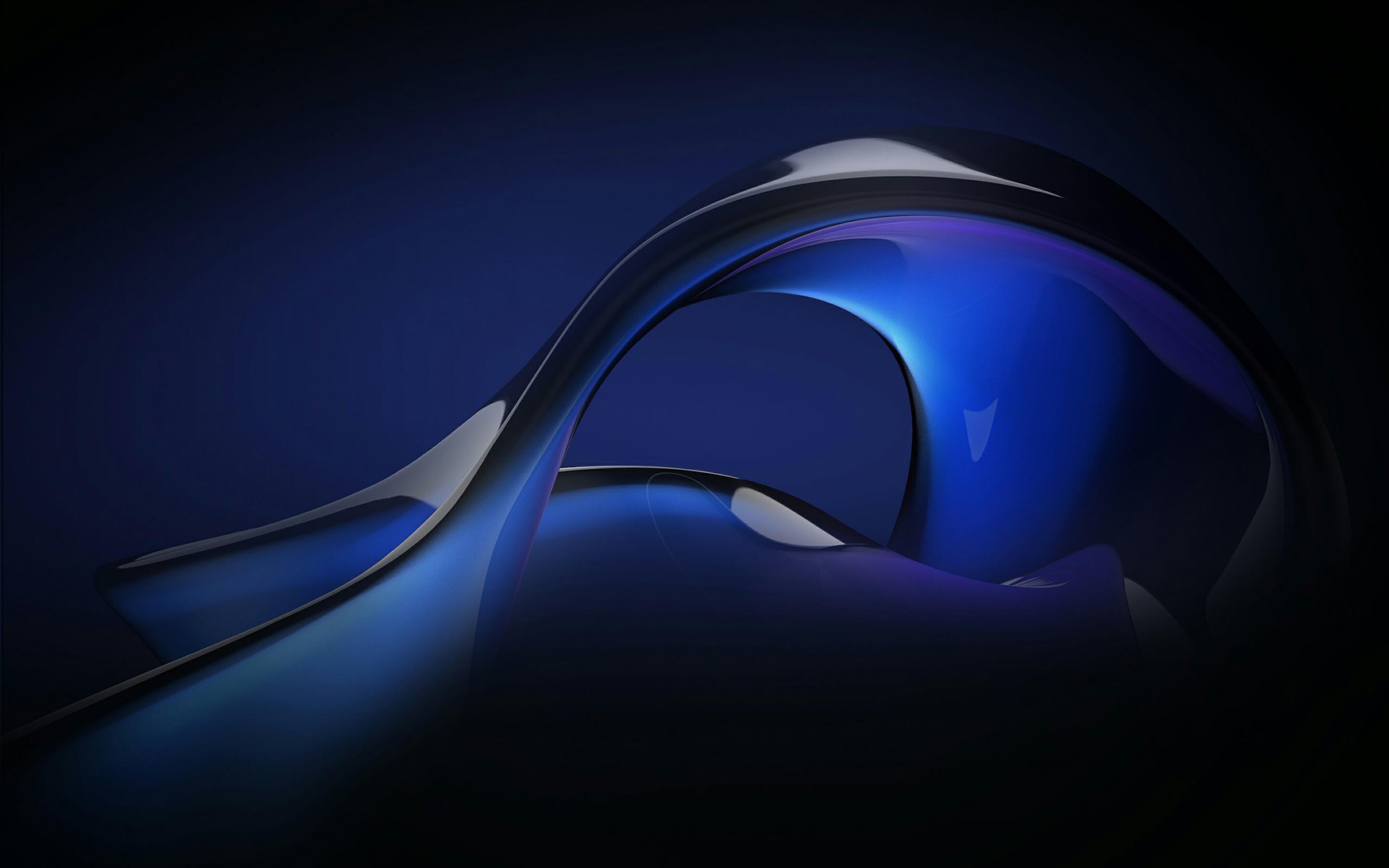 Description: A blue abstract background with a curved design on it's side and a black background with a blue and white stripe.