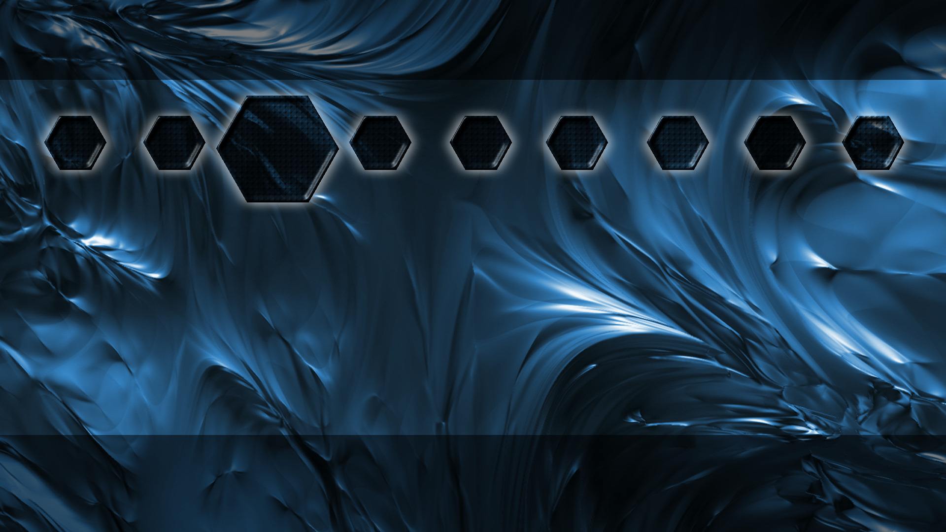 Description: A blue abstract background with hexagonal shapes and lines of light and dark colors with a black center.