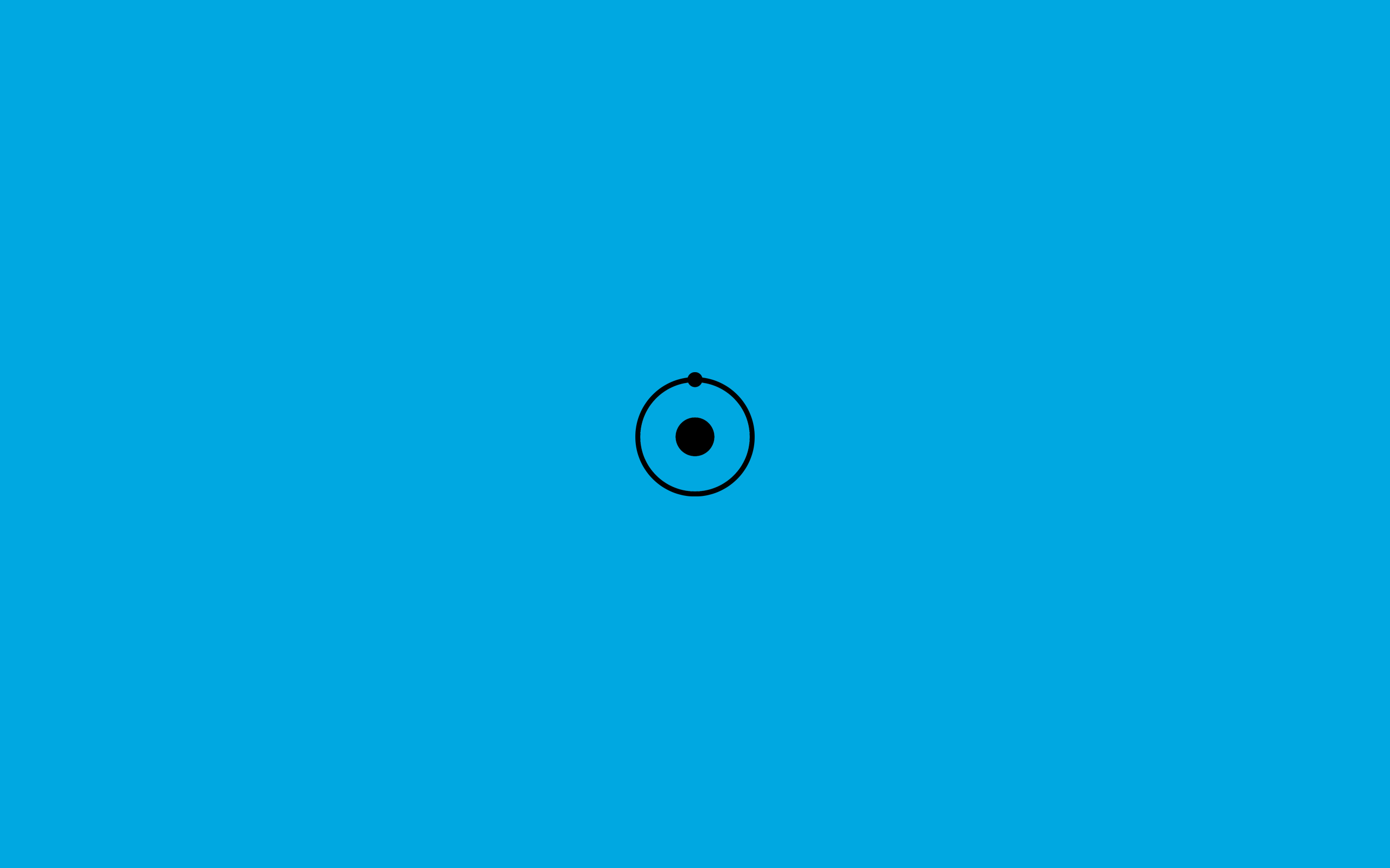 Description: A blue background with a black circle in the center of it and a black dot in the middle of the circle.