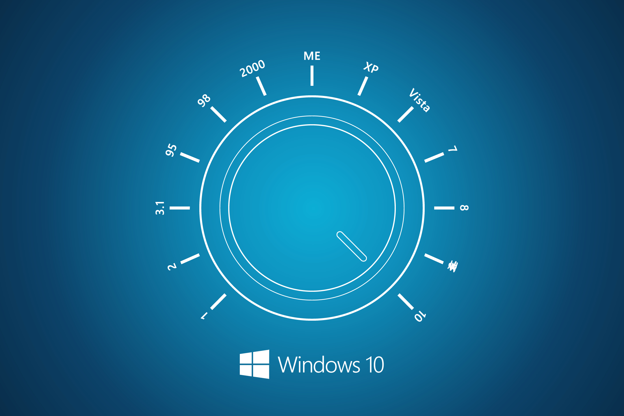 Description: A blue background with a clock and windows 10 logo on it and a window 10 logo on the bottom right corner.