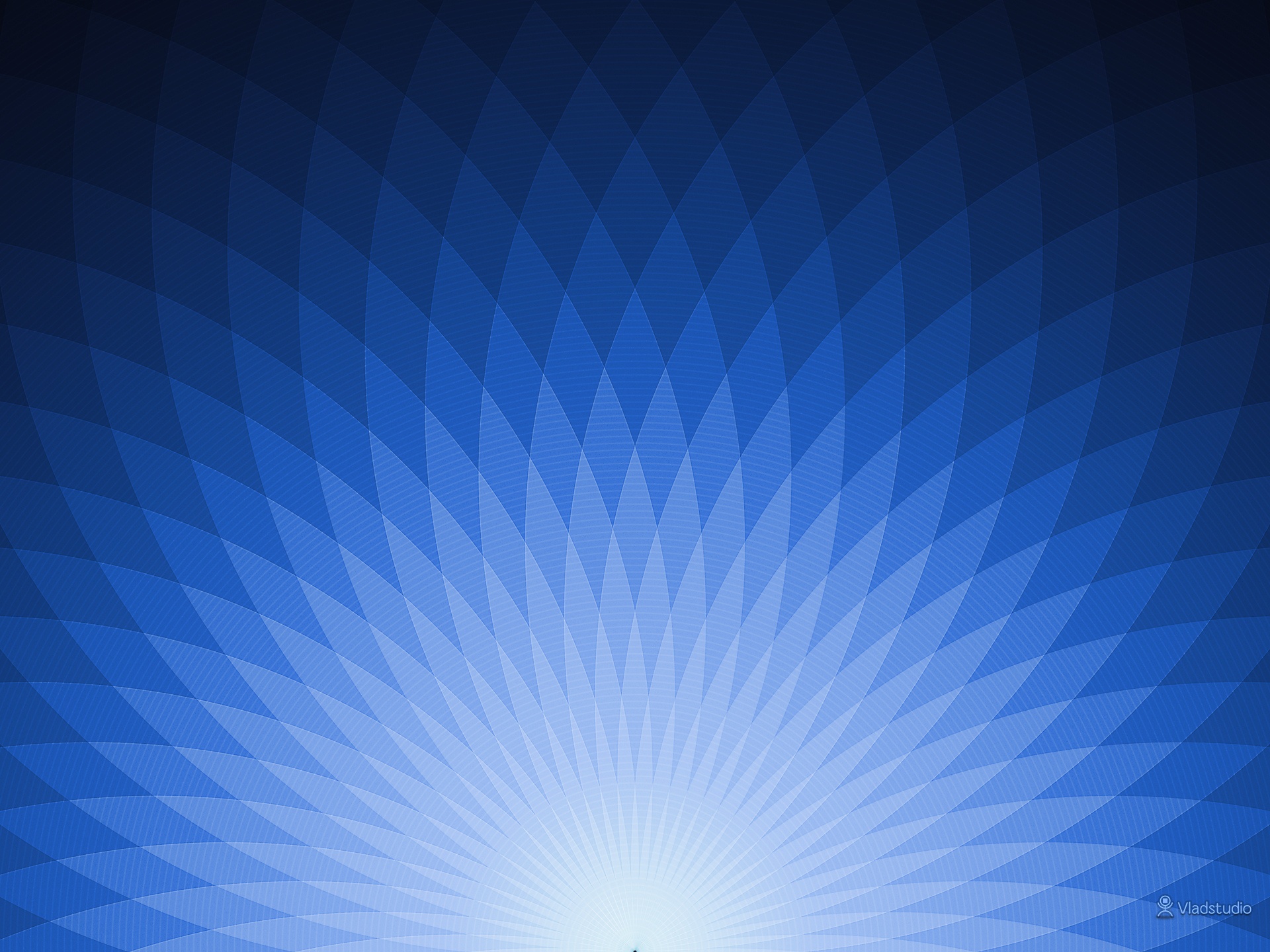 Description: A blue background with a large flower like pattern on it's side and a white center in the middle.