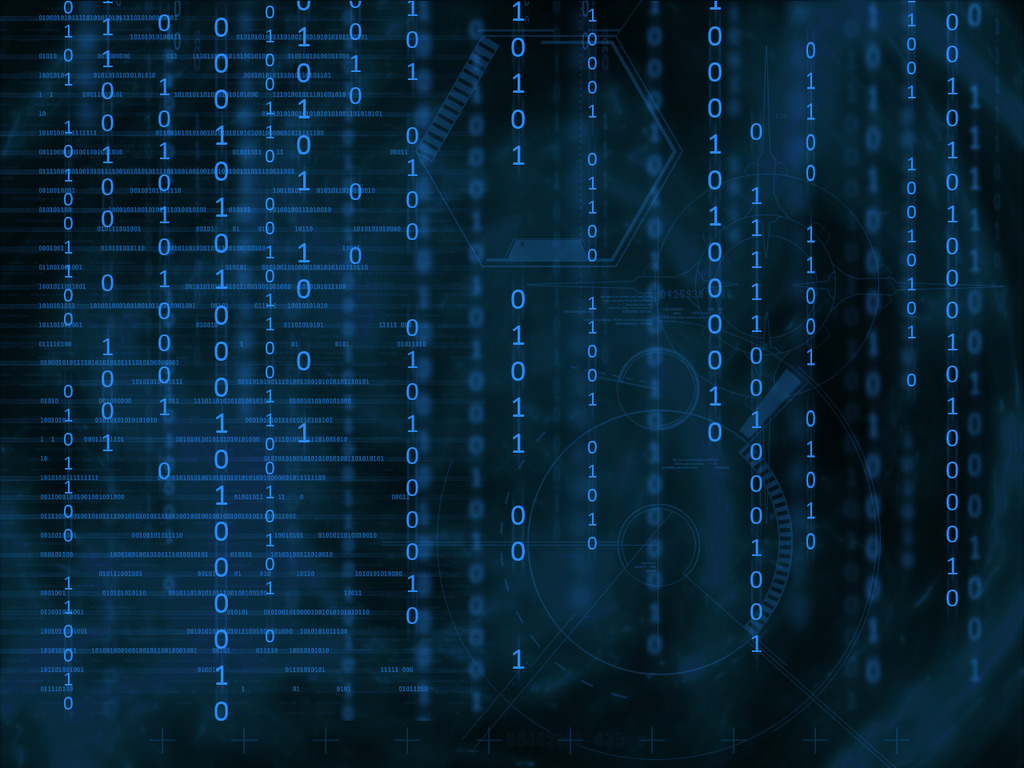 Description: A blue background with a lot of numbers on it and a clock on the side of it with a dark background.