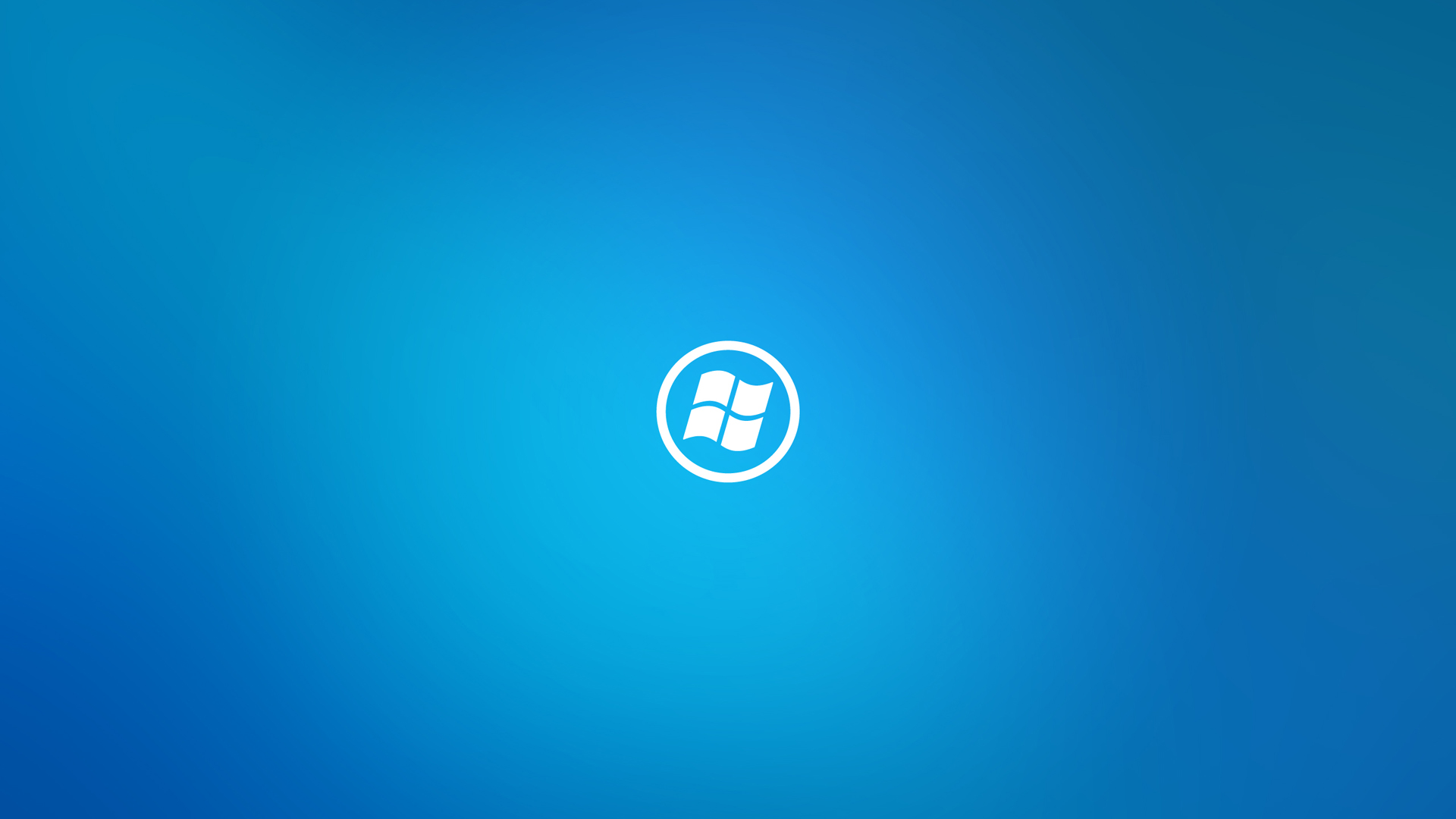 Description: A blue background with a white logo on it's side and a white circle in the middle of the image.