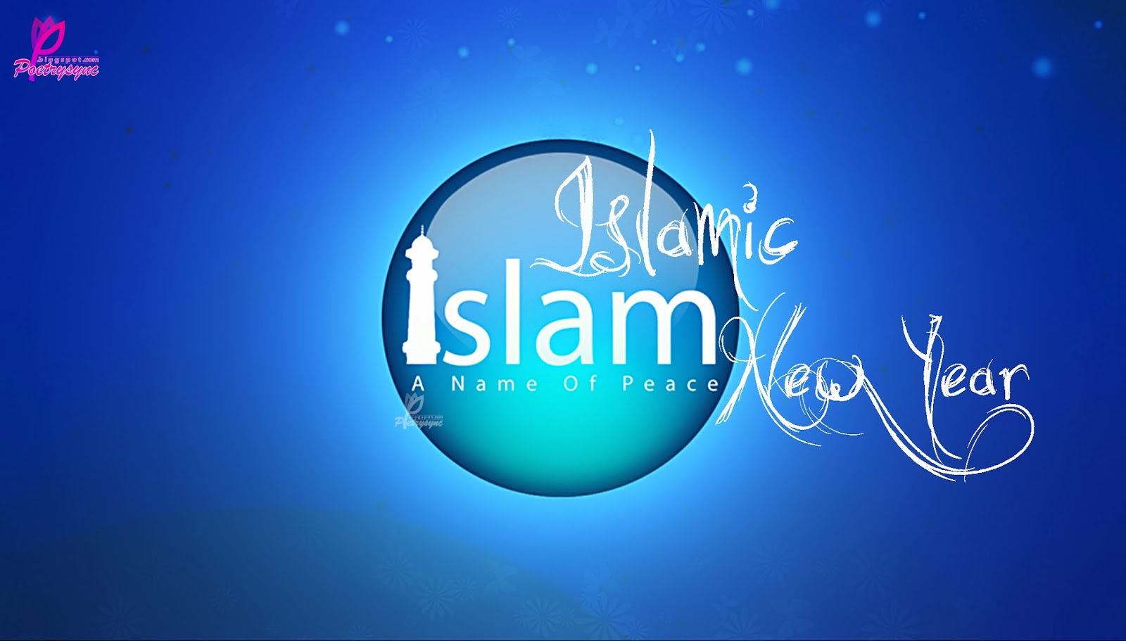 Description: A blue background with a white text that says islamic new year on it and a blue background with a white text that says islamic new year.