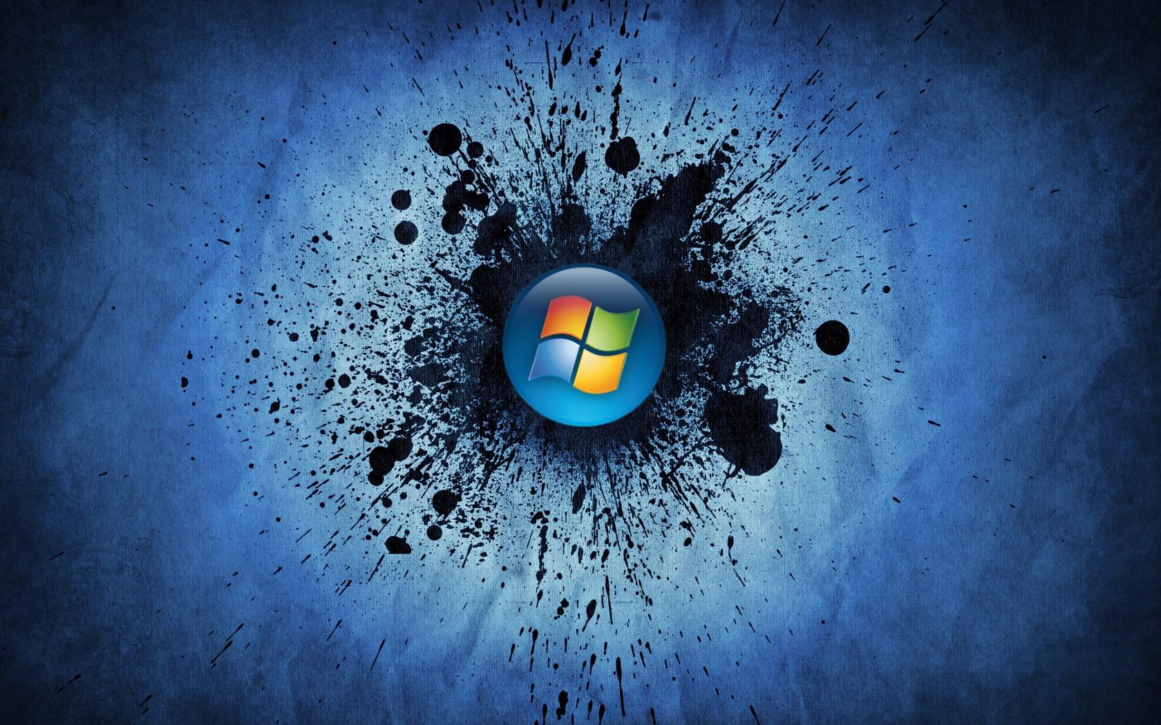 Description: A blue and black wall with a blue and black logo on it and a hole in the middle of the wall.