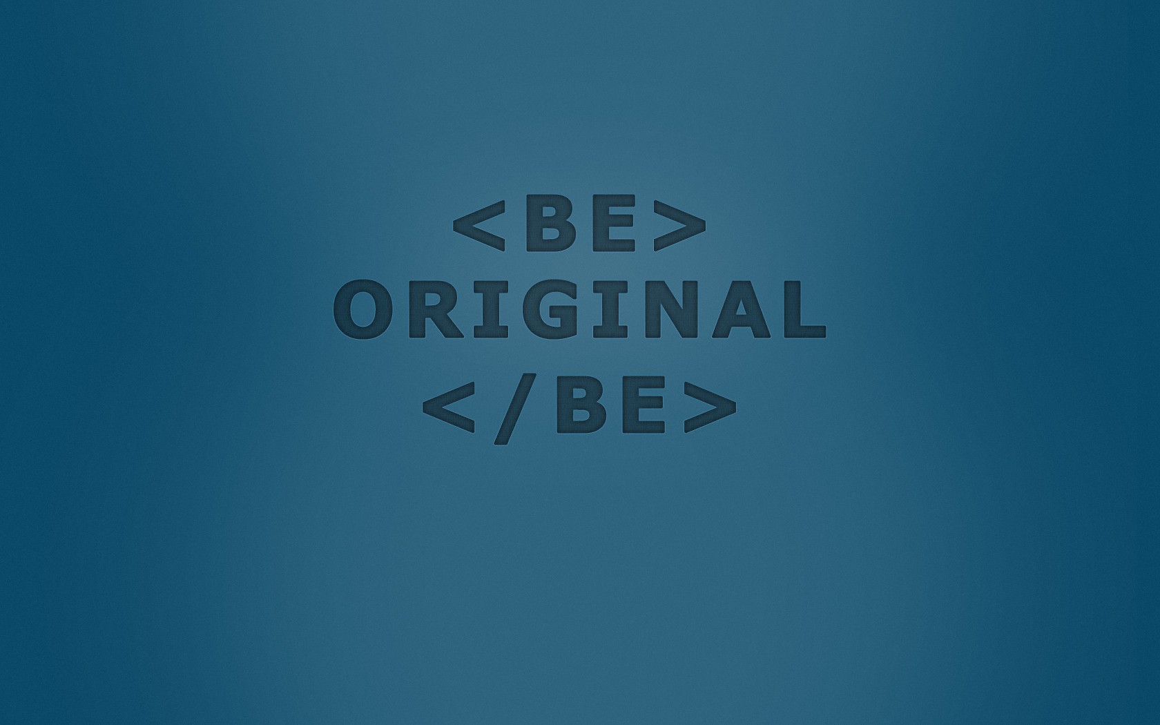 Description: A blue background with a black and white type of text that reads be original / be / be /.