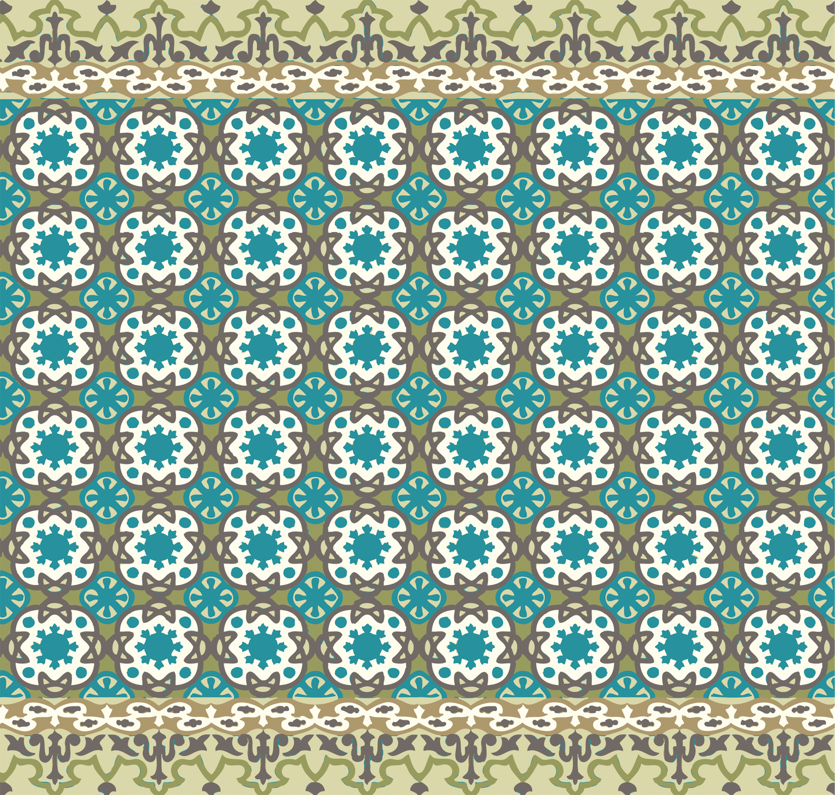 Description: A blue and brown pattern with a white border on it.