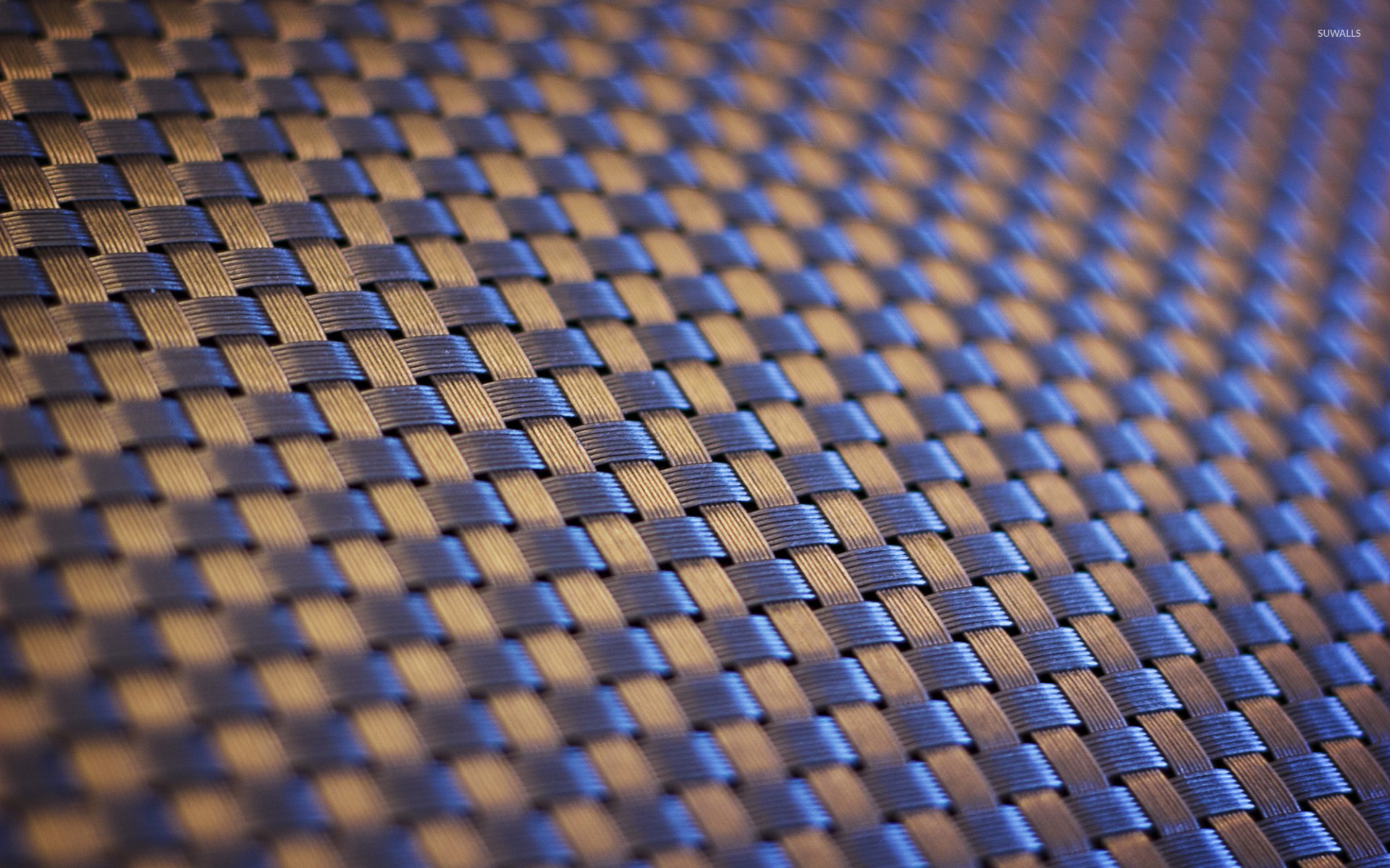 Description: A close up of a blue and brown woven material with a brown background and a black stripe on the bottom.
