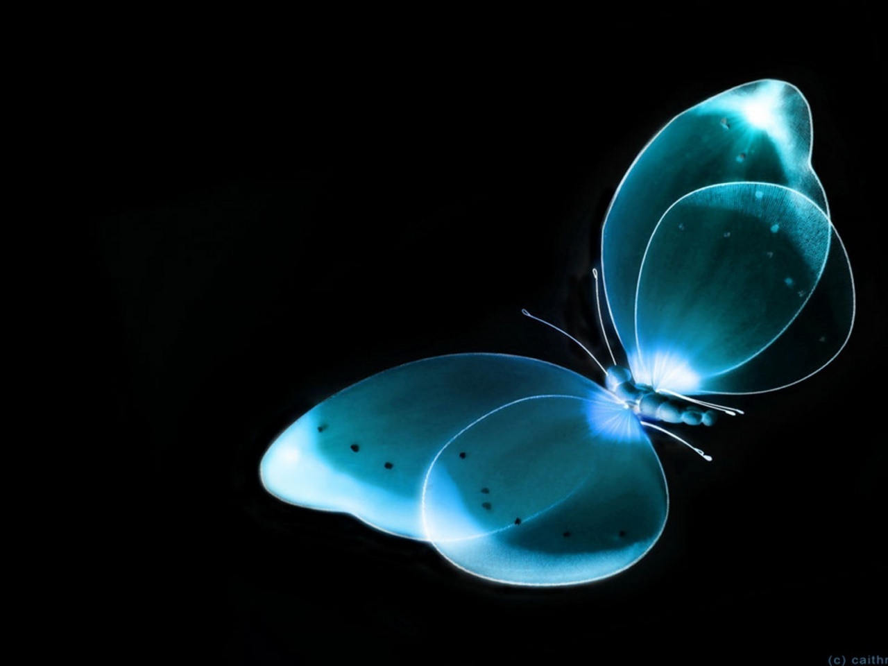Description: A blue butterfly with a black background and a black background with a blue butterfly on it's wings.