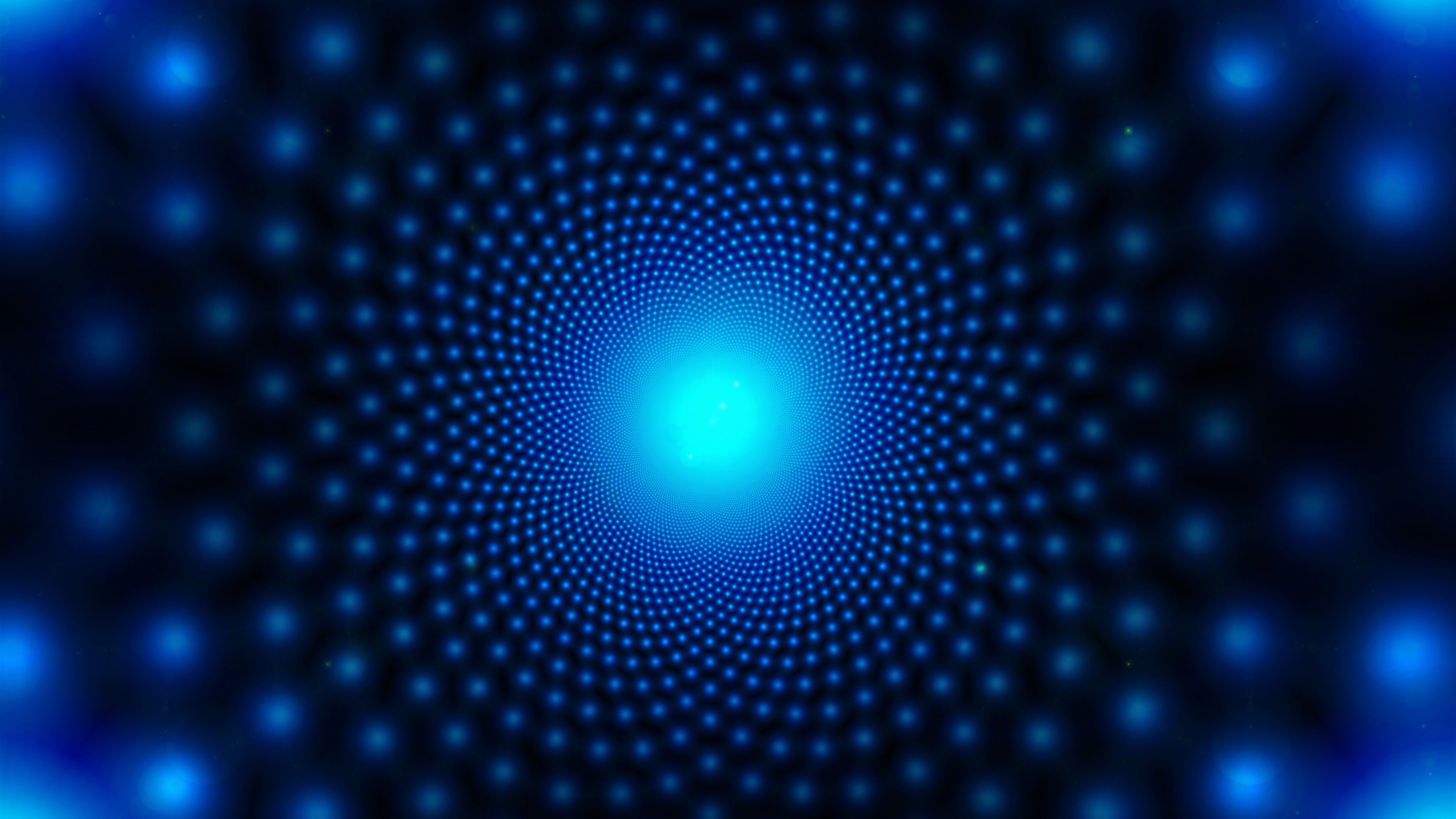 Description: A blue background with a circular design in the center of it and a blue light at the end of the circle.
