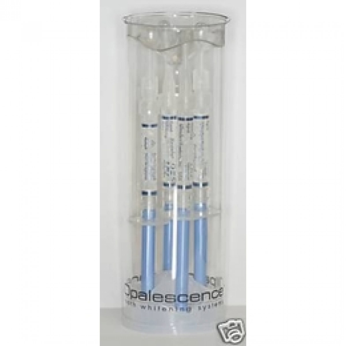 Description: A set of four blue and clear tubes in a clear container with a white background and a white background.