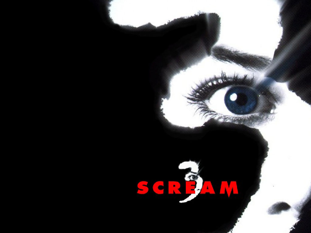 Description: A person with blue eyes and a white cat with a red word underneath it that says scream on a black background.