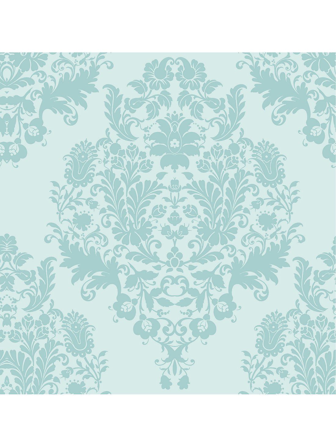 Description: A blue wallpaper with a floral design on it's side and a white background with a light blue border.