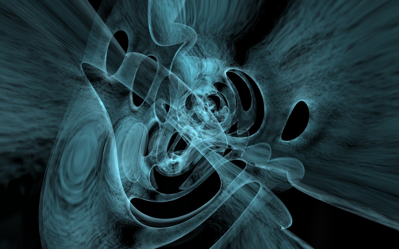 Description: A computer generated image of a blue flower with a black background and a white center with a black center.