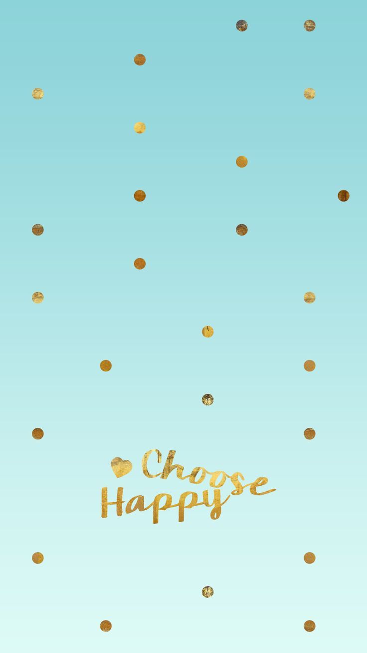 Description: A blue and gold background with gold confetti and a message that says choose happy on it's side.