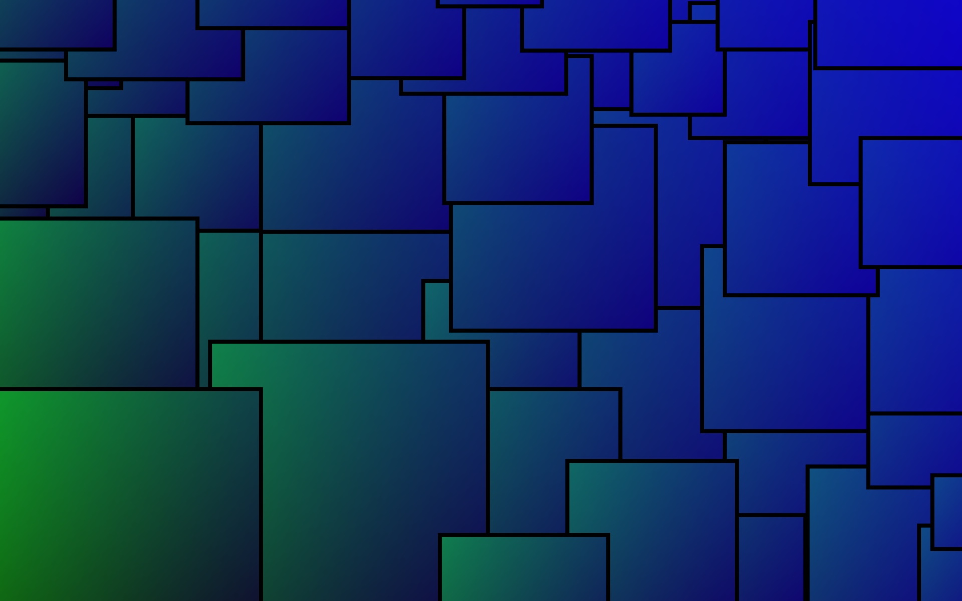 Description: A blue and green background with squares of varying sizes and colors in the middle of the image.