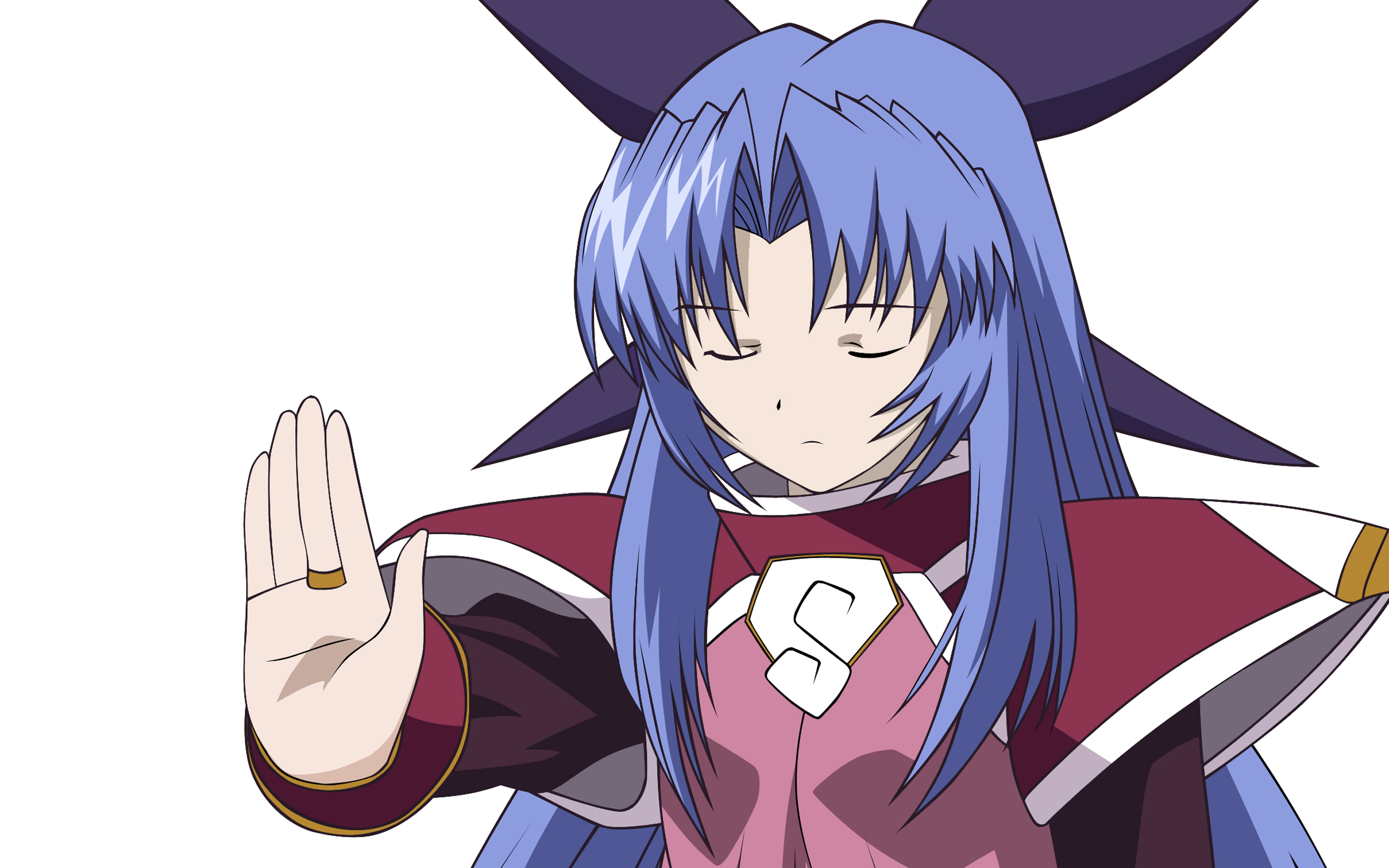 Description: A person with blue hair and a purple outfit with ears and ears.