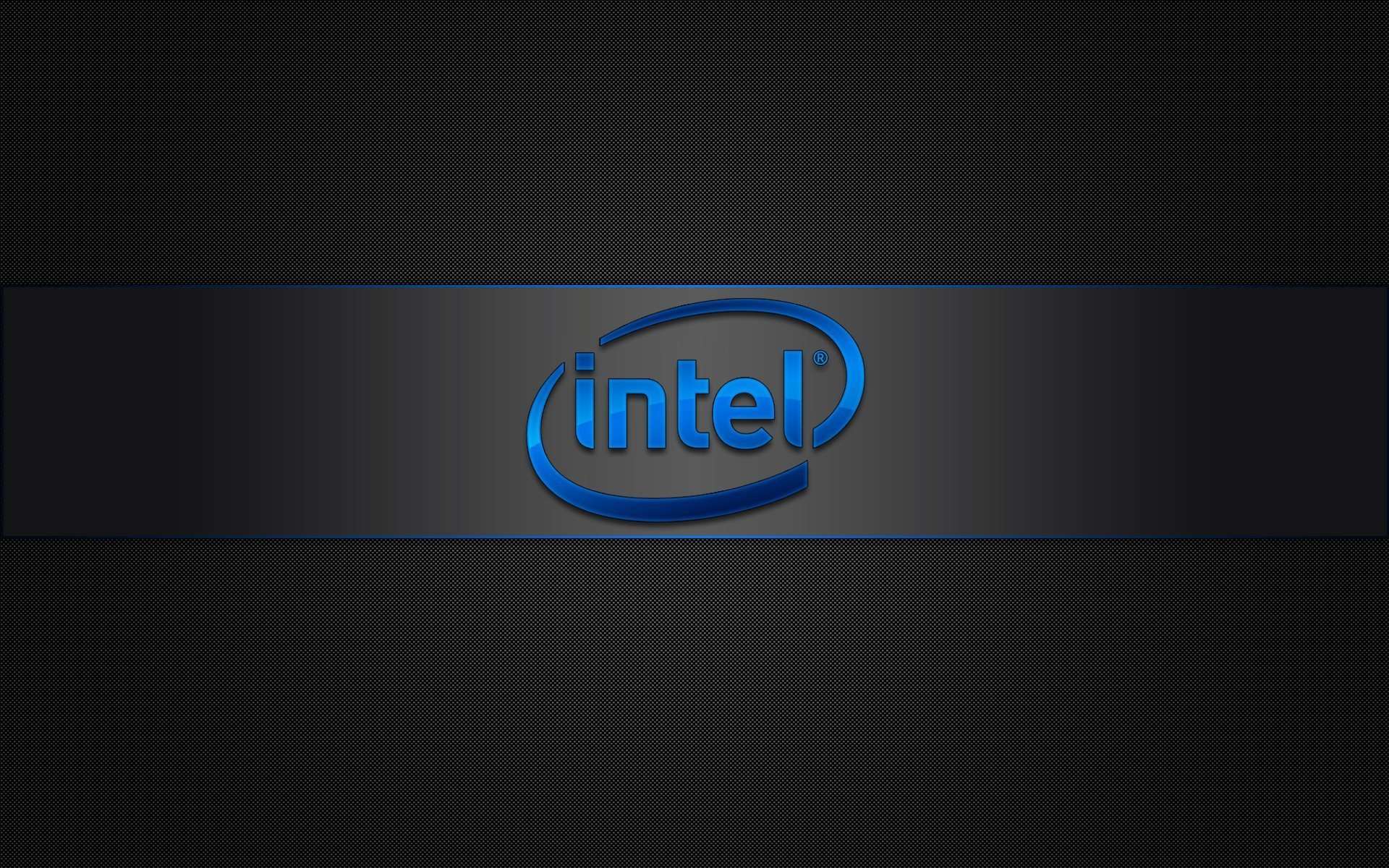 Description: A blue intel logo on a black background with a blue stripe around it and a black stripe around the bottom of the logo.
