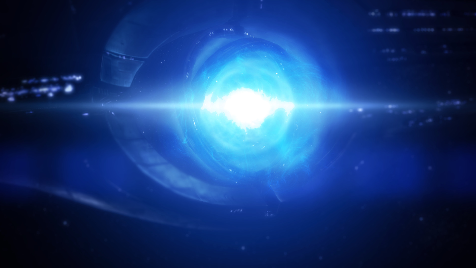 Description: A blue light is shining in the dark sky with a bright light coming out of it's center.