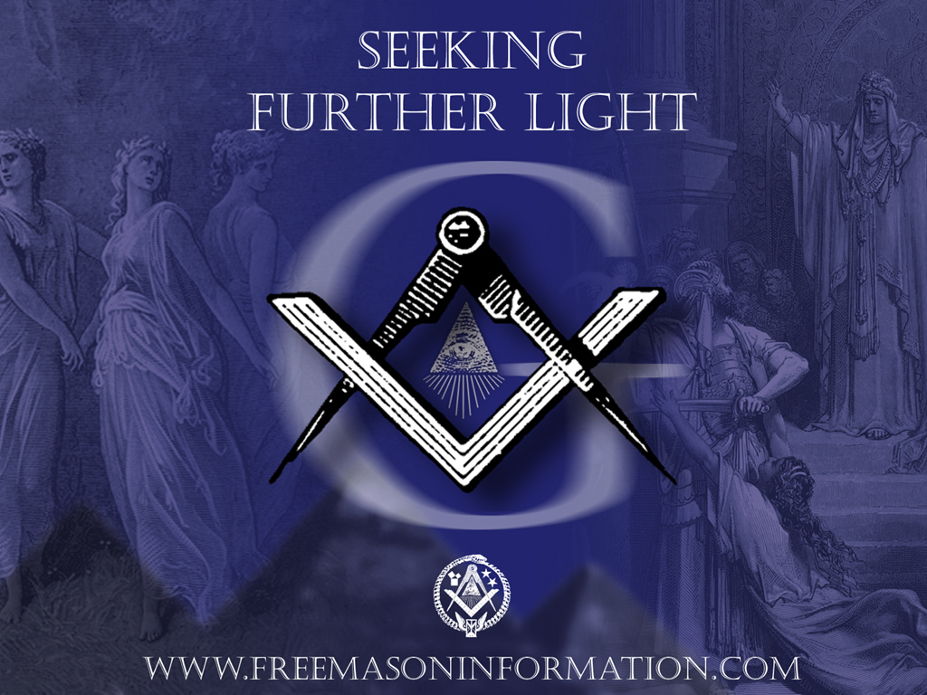 Description: A blue background with a picture of a masonic symbol and a third eye on it with the words seeking further light.