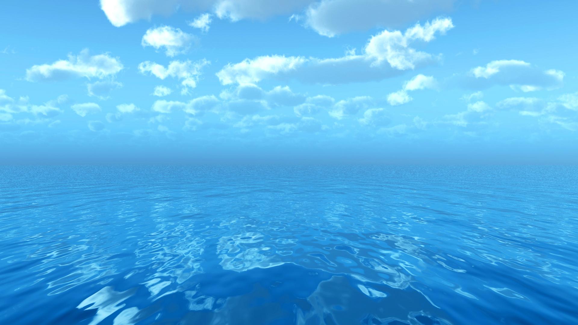 Description: A blue ocean with a few clouds in the sky above it and a blue sky with some clouds above it.