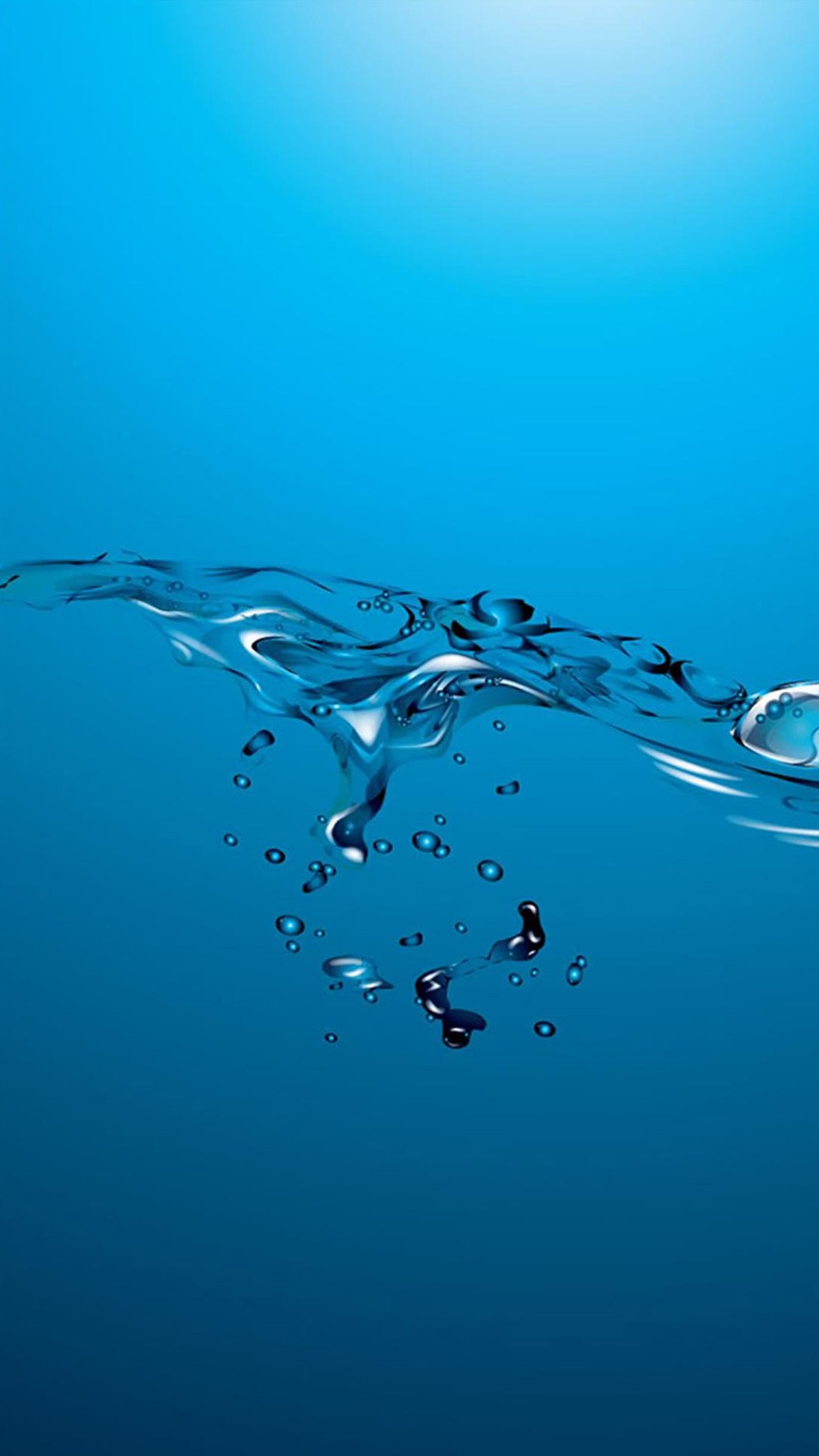 Description: A blue ocean with a wave of water and bubbles of water on the bottom of the water and a sun above.