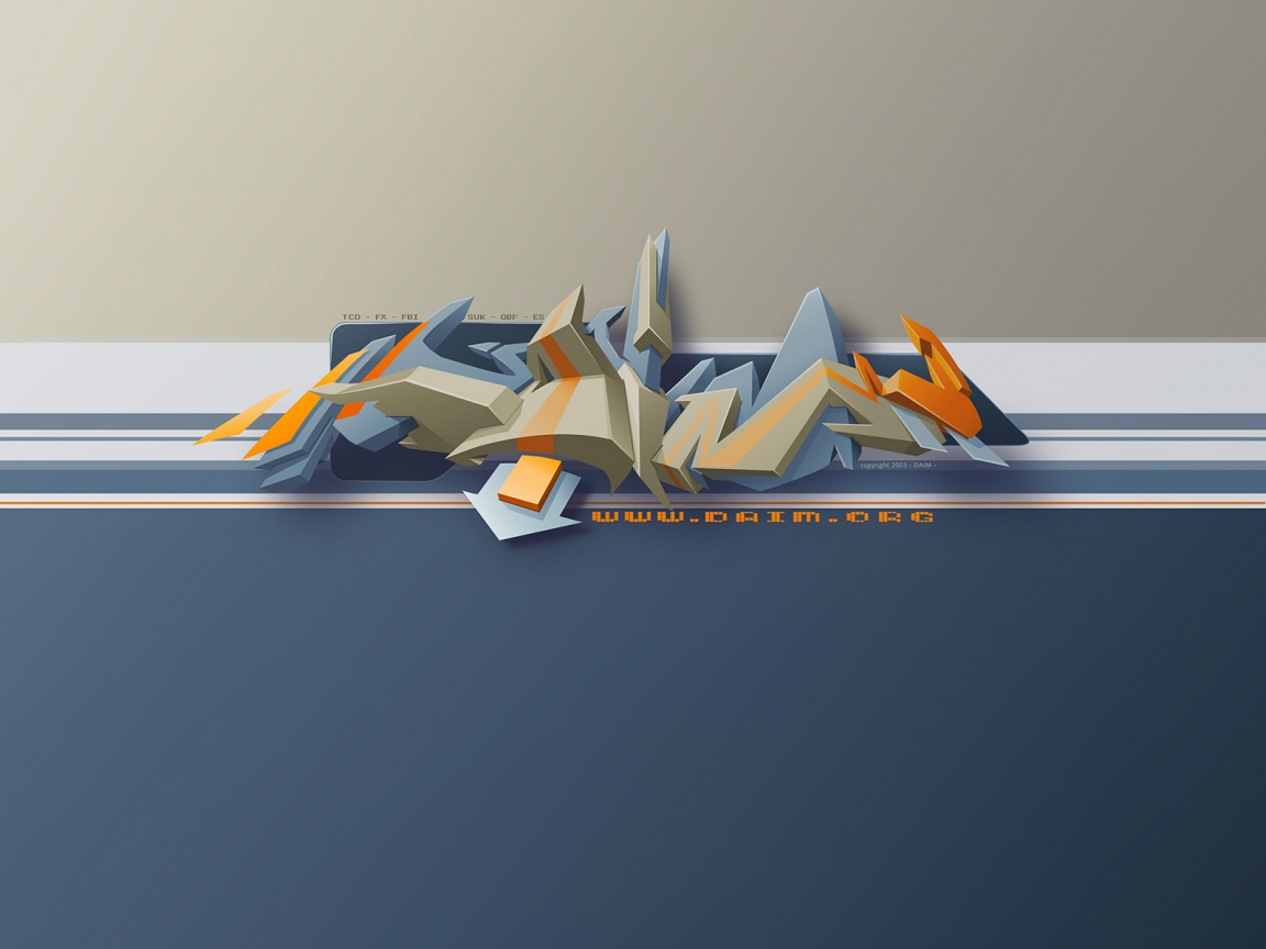 Description: A blue and orange abstract background with a mountain range in the middle of it and a strip of text below.