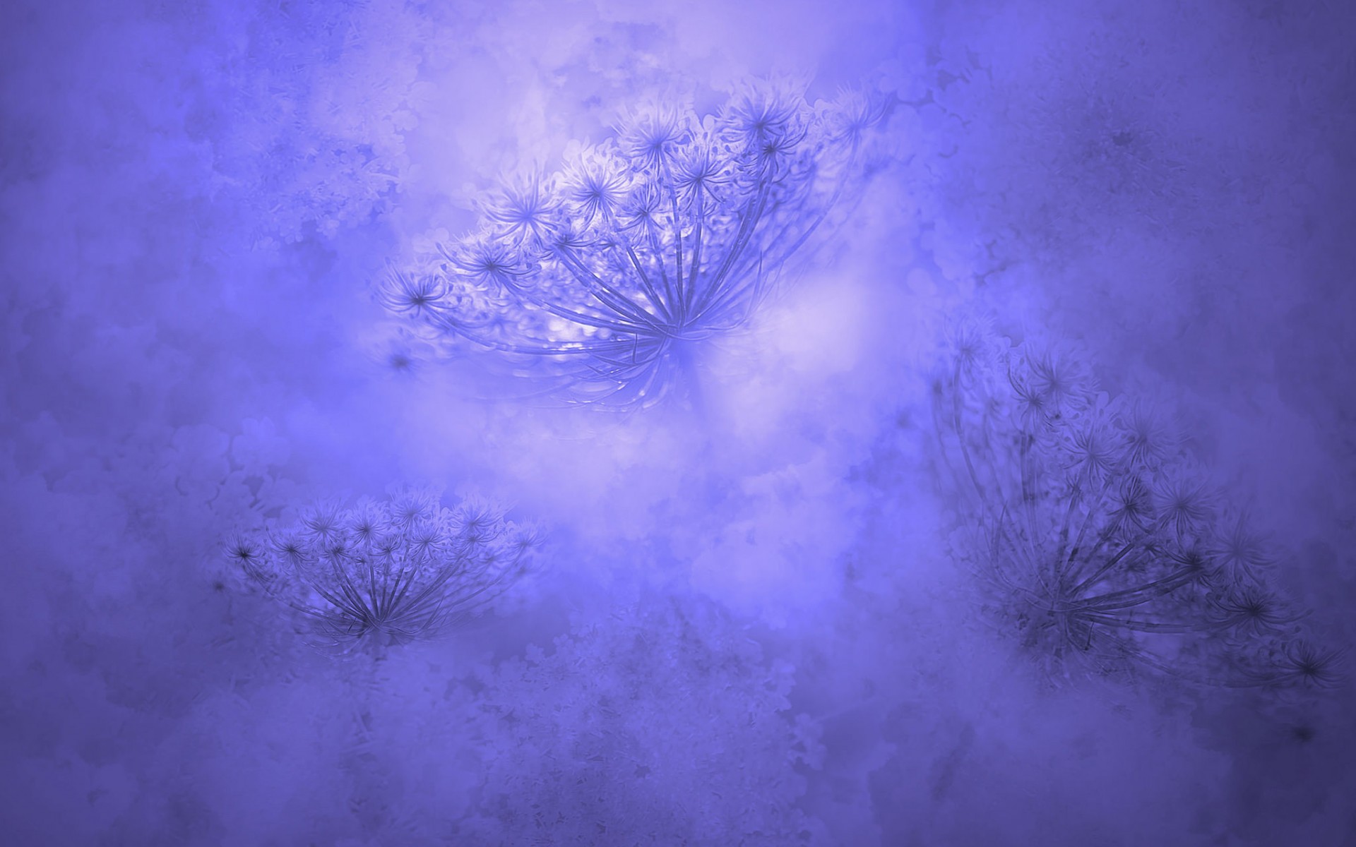 Description: A blue photo of a plant in the foggy sky with a blue background and a white cloud in the middle.