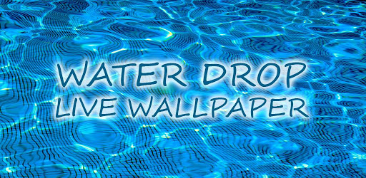 Description: A blue pool with water drops and the words water drop live wallpaper written in white letters on the bottom.