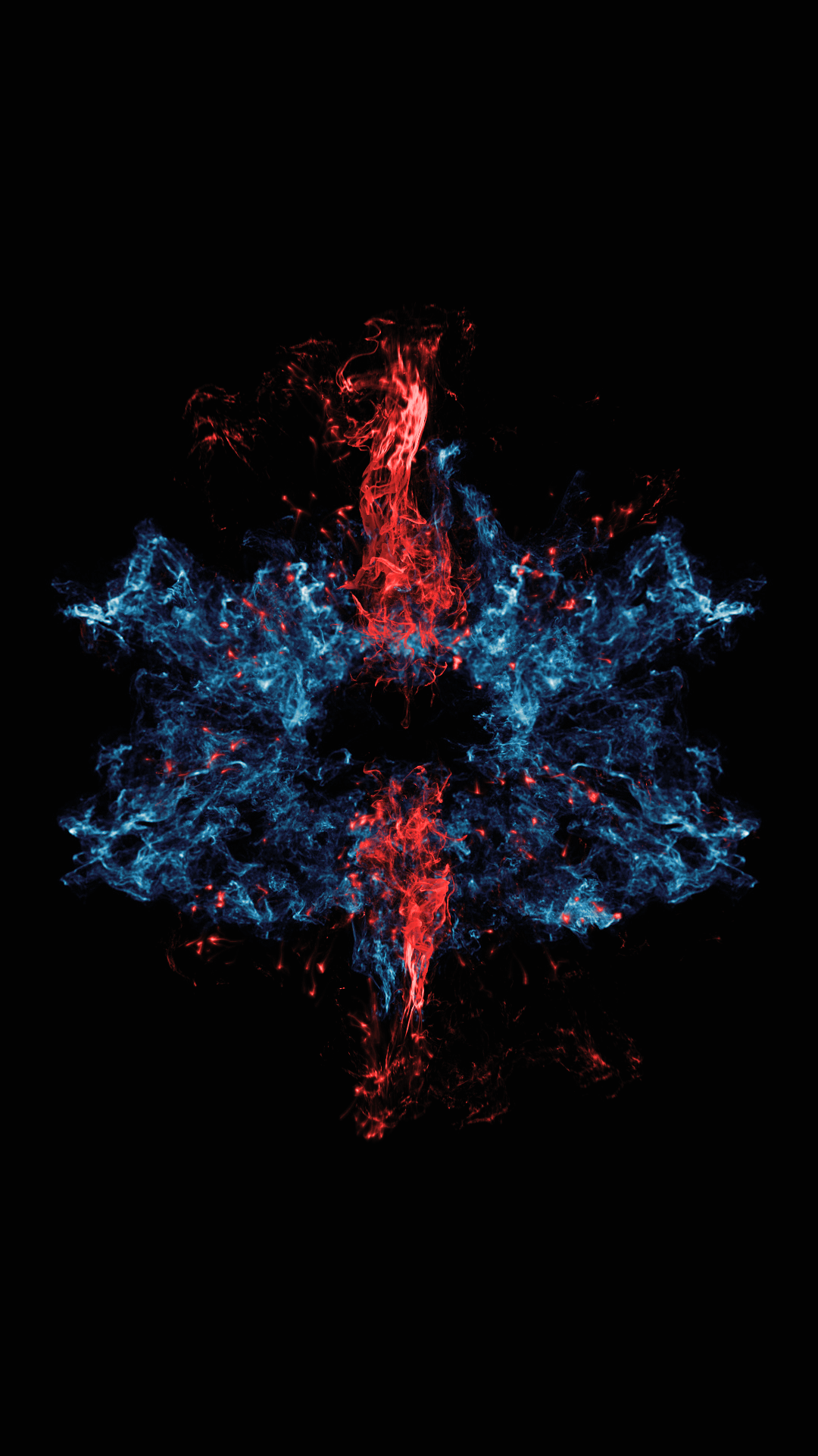 Description: A blue and red object is shown in the dark sky with a black background and a red and blue object is shown in the middle of the image.