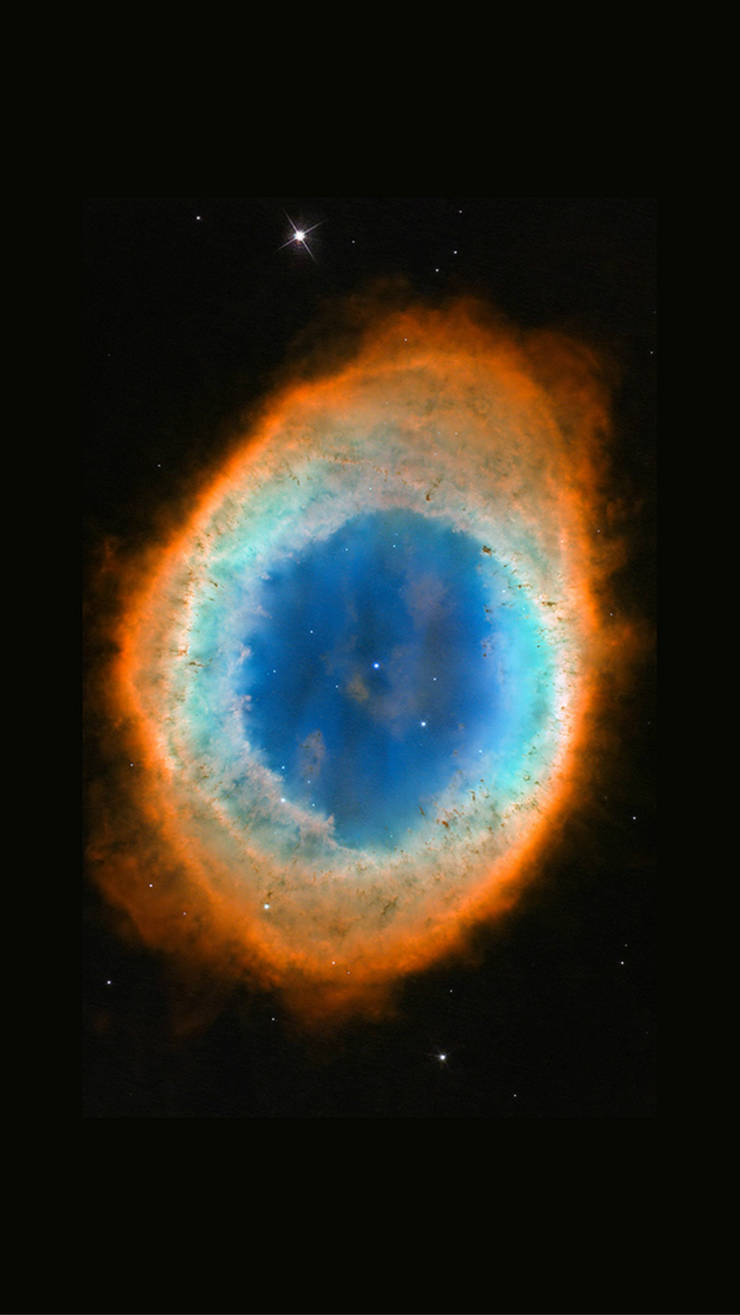 Description: A blue ring in the sky with stars around it and a star in the background with a black background.