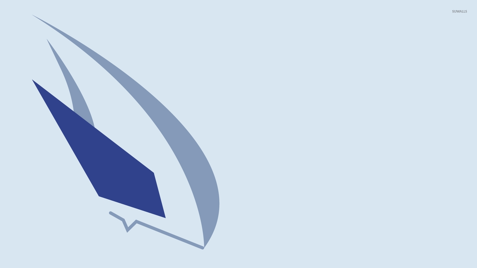 Description: A blue sailboat with a white sail on it's side and a blue background with a white line.