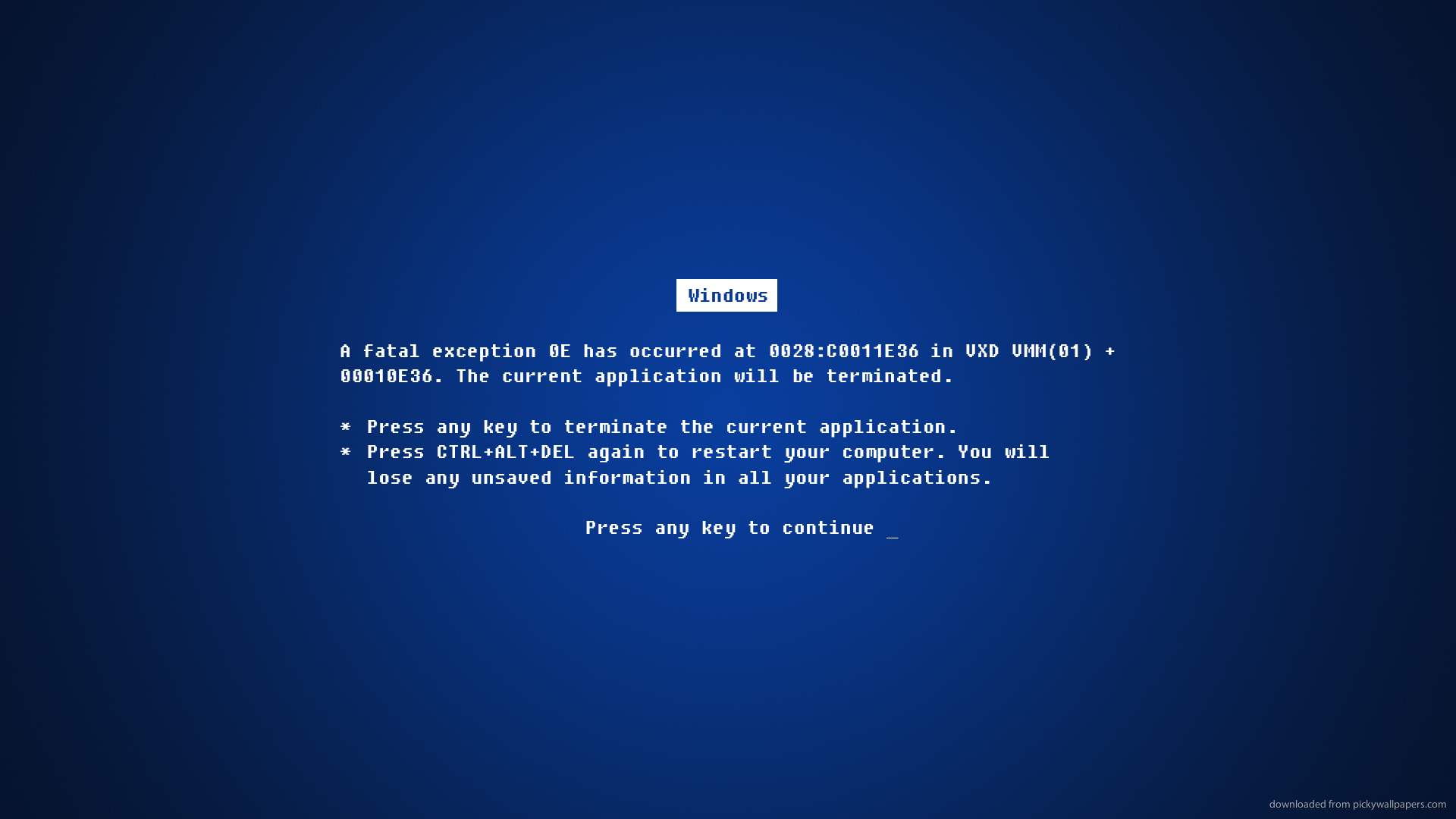 Description: A blue screen with a white text on it that says.