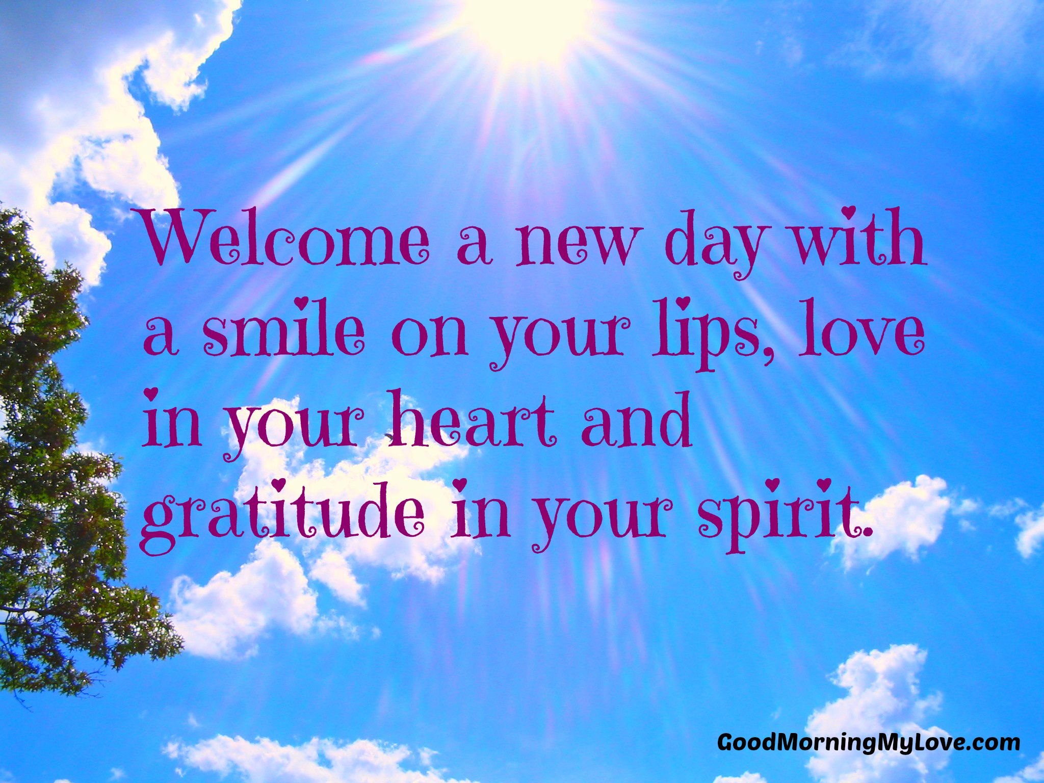 Description: A blue sky with clouds and a sun with a quote from godmotmotlylove com on it.