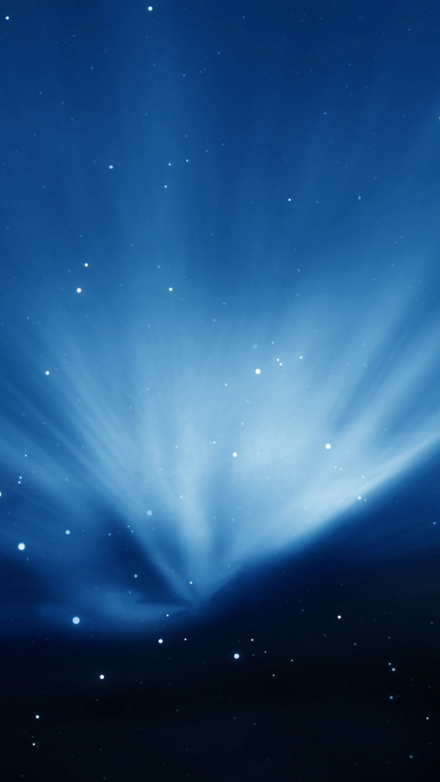 Description: A blue sky with stars and clouds in the background and a black background with a white dot in the center.