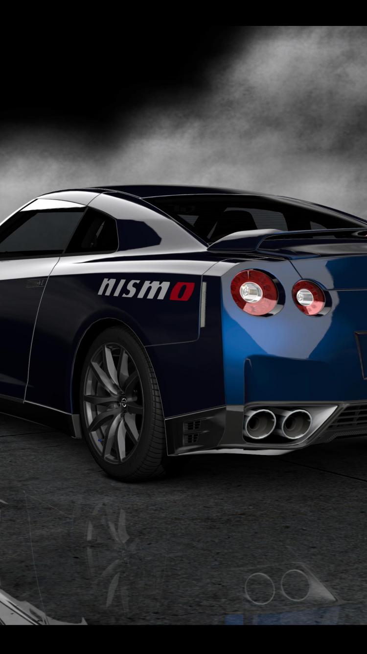 Description: A blue sports car with a red tail light on it's side in a dark background with smoke.