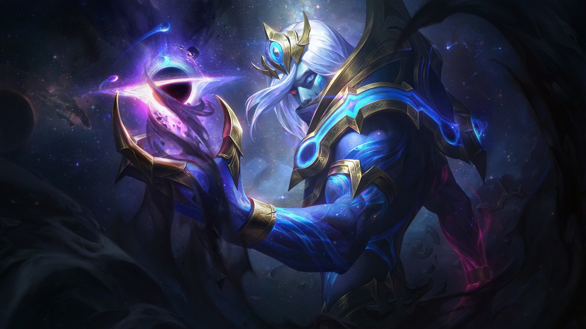 Description: A man in a blue suit holding a purple object in his hand with a purple light shining on his face.