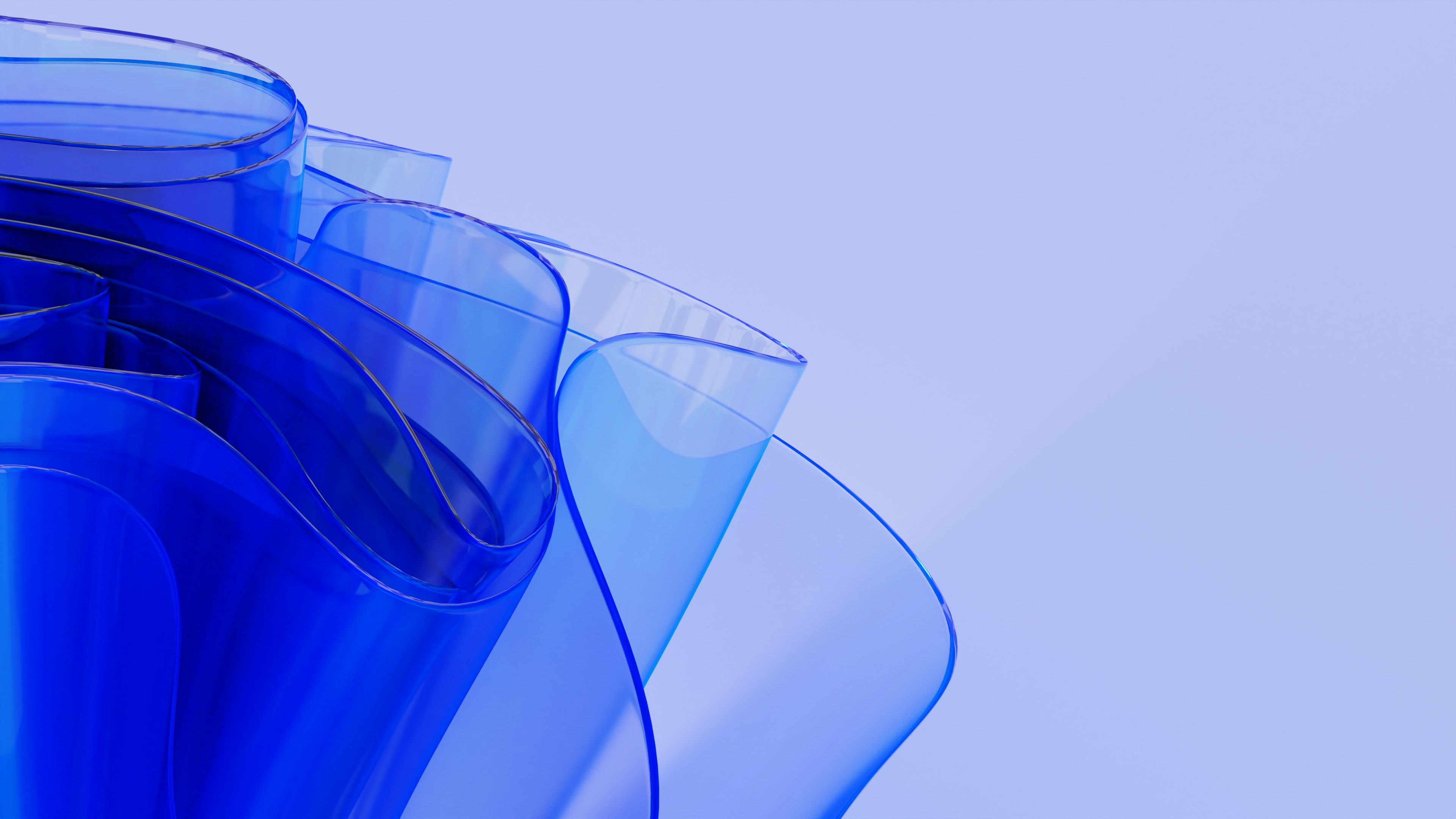 Description: A blue vase with a curved design on it's side and a blue background behind it.