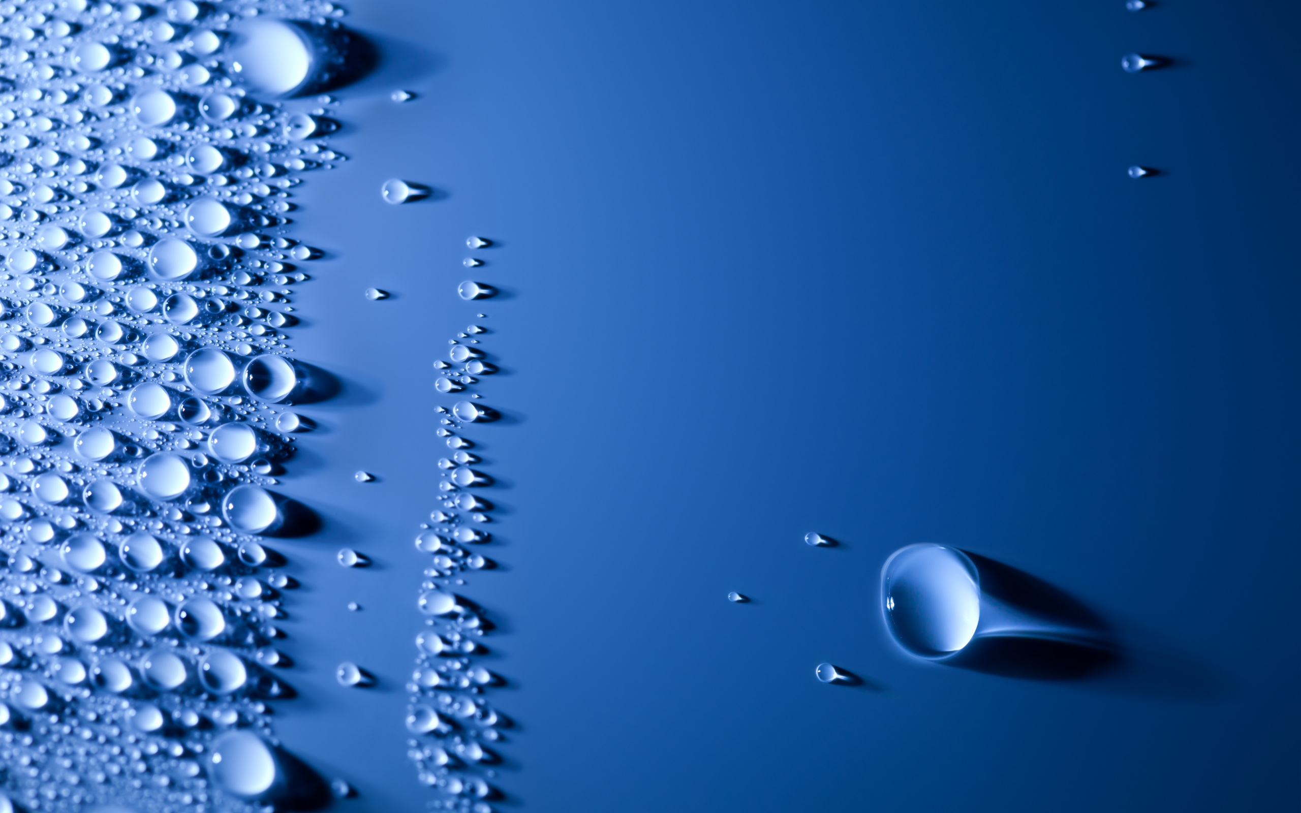 Description: A blue background with water drops and a blue sky in the background with a few more drops of water.