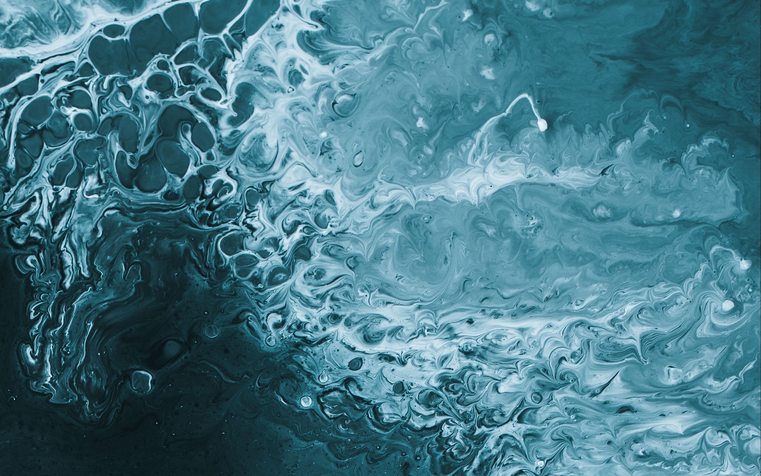 Description: A blue and black background with water drops on it and a white circle in the middle of the image.