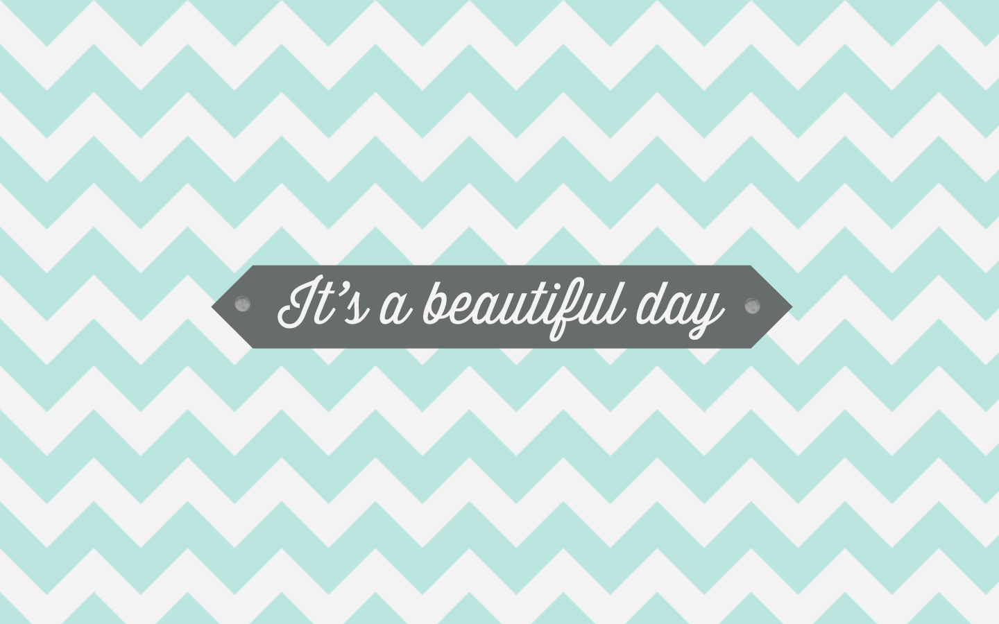 Description: A blue and white chevron pattern with a gray ribbon that says it's a beautiful day on it.