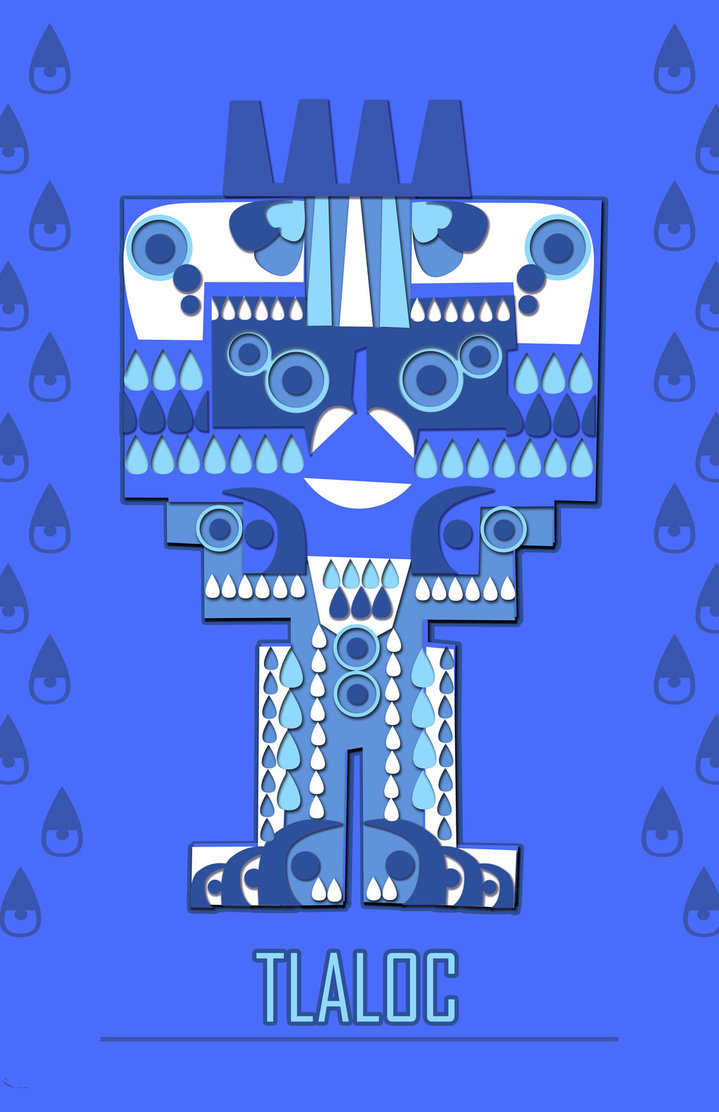 Description: A blue and white robot with a name on it's face and a blue background with drops of water.